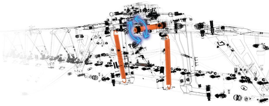 Современная технология стабилизации штанги за счет маятниковой системы и системы гироскопов, которая позволяет с первых метров работы разделить машину на 2 агрегата: самоходное шасси и как отдельный элемент механизм внесения и распределения СИЗР.