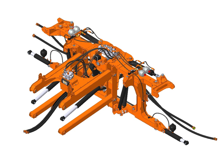 Штанга крепится к опрыскивателю в одной точке, имеет датчик положения в горизонте относительно машины, контролируется положение гидравлически, с помощью одного ГЦ. -